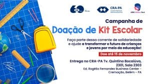 O CRA-PA, através da Comissão ADM Mulher, lança a Campanha de Doação de Kit Escolar, reforçando o compromisso da Administração ...